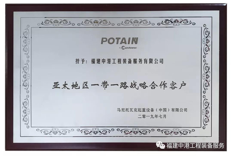 作為一家綜合性專業(yè)化工程裝備服務(wù)公司,中港公司立足“高起點建設(shè)、高質(zhì)量管理、高效能運作、高標準服務(wù)”的高地平臺,始終如一堅持規(guī)范運作、科學(xué)管理,憑借全方位的技術(shù)支持、強大的設(shè)備實力和安全可靠的安裝維修能力,贏得了顧客的忠誠和美譽。先后榮獲“中聯(lián)重科五千萬級戰(zhàn)略合作伙伴”、“中建二局第一建筑工程有限公司AAA誠信供方”、“第十三屆全國建筑機械租賃企業(yè)設(shè)備管理優(yōu)秀單位”、“中建二局第一建筑工程有限公司2015年度優(yōu)秀分供方”、“中建海峽建設(shè)發(fā)展有限公司2016年優(yōu)秀合作企業(yè)”、“中建三局集團有限公司(粵)2017年度良好合作單位”、“2018年全國建筑施工機械租賃50強企業(yè)”、“廣東省建筑機械租賃、安裝企業(yè)信用評價B級”、“2020年中國塔機租賃50強”等。
